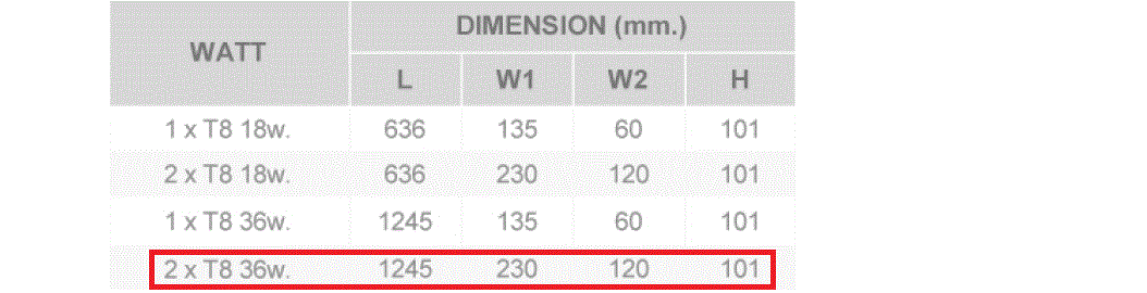 ขนาดโคมโรงงาน 2x36W (120cm.)