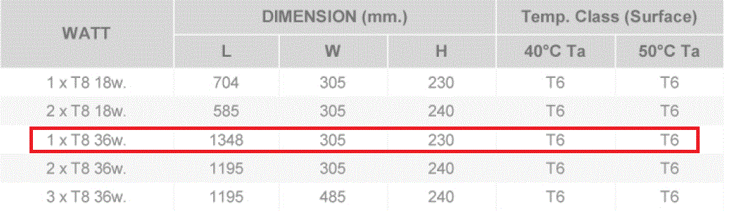 ขนาดโคมกันระเบิด 1x36w (120cm.)