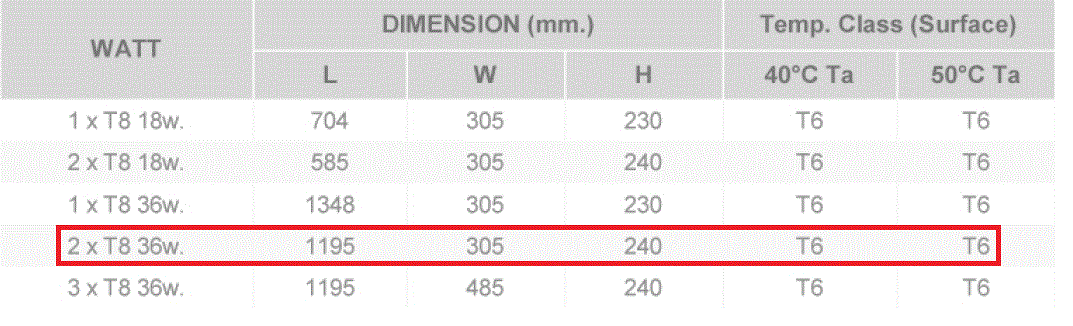 2. ขนาดโคมกันระเบิด 2x36w (120cm.)