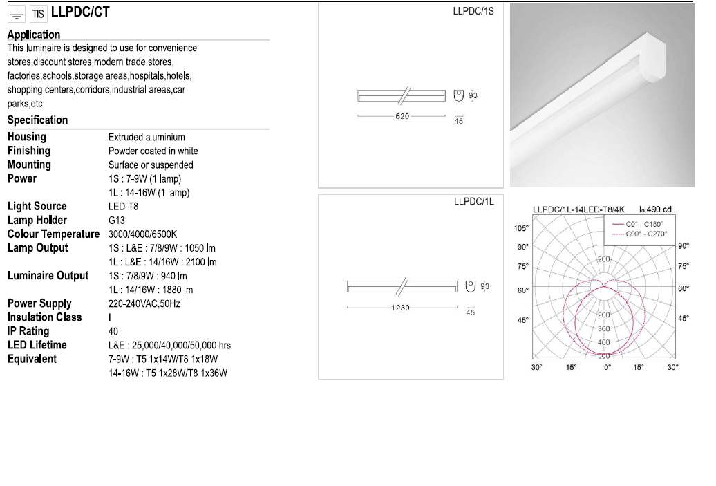 โคมตัวยูหน้าพลาสติก หลอดT8 LLPDC/1S 1x18W (60cm.)